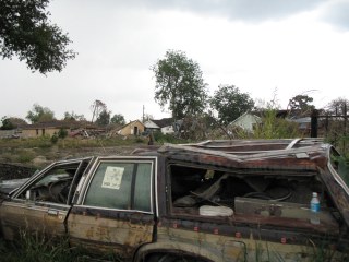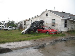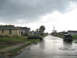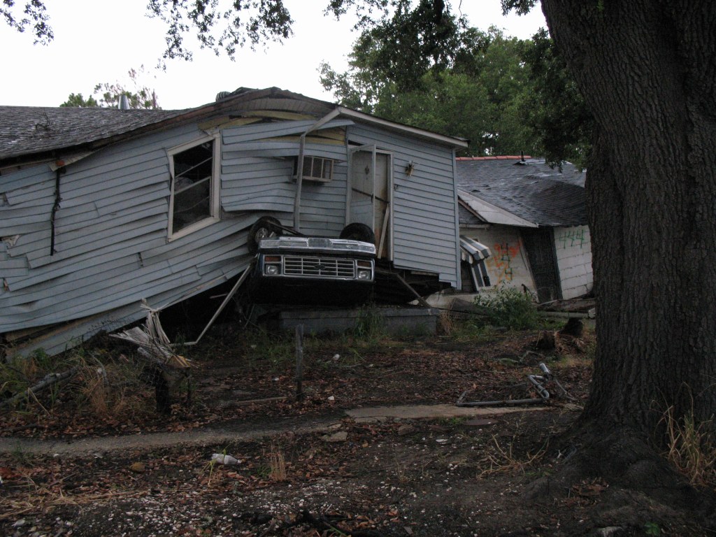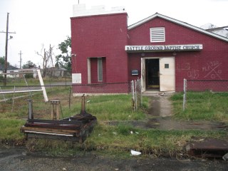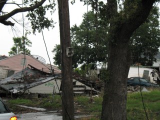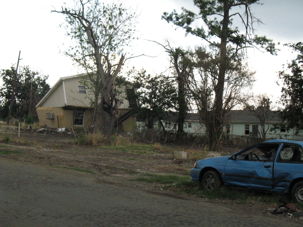 From a city of 350,000 people, only 100,000 remain. The French Quarter was pretty much untouched by Katrina, and the CBD is pretty much fine as well - meaning that the average tourist would barely notice... BUT... You go over a bridge and out into the suburbs where all the poor people lived (read - black neighbourhoods) and - well, you can see from the pictures below.