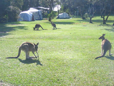 - Lots of Kangaroos, boil billy, coffee, bfast.