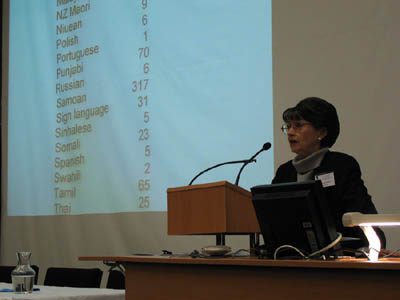 Mum delivers a talk at the Society of Translators and Interpreters in Auckland.