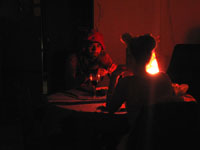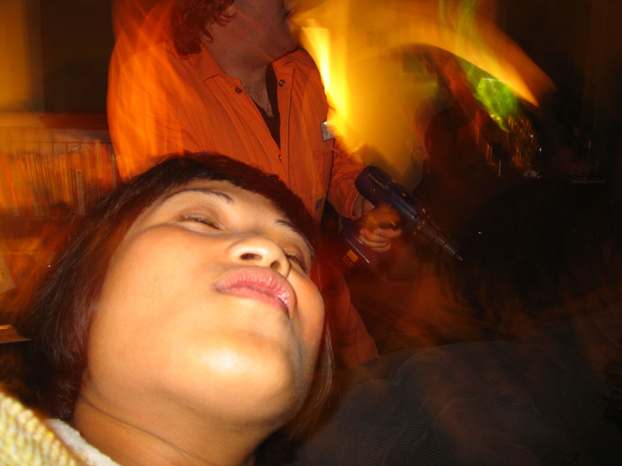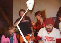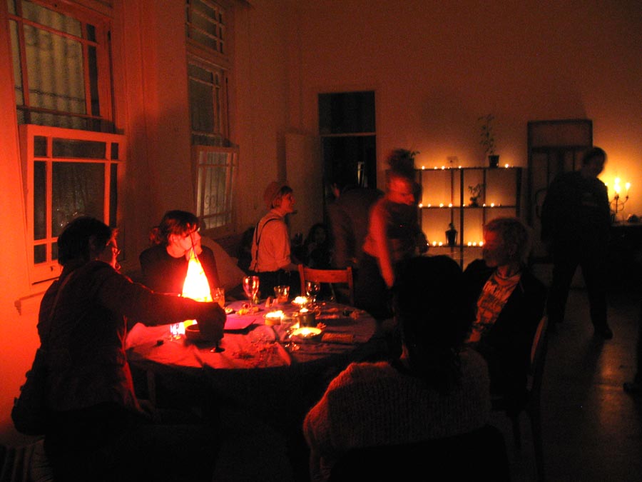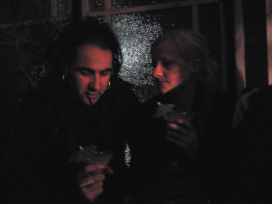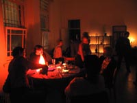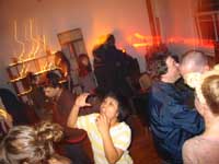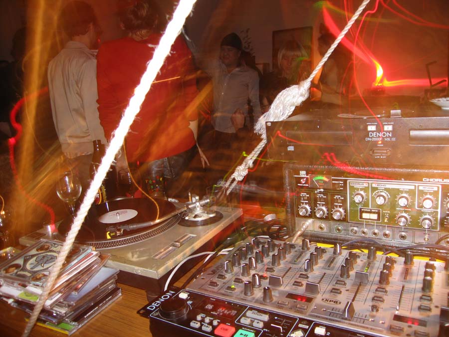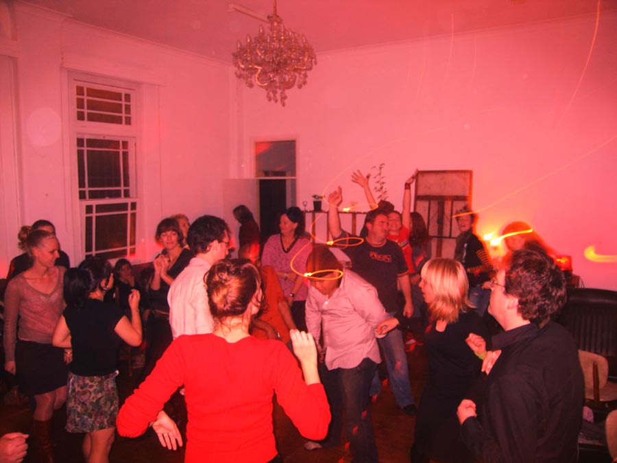 Yep - this one was another kicker! While it was cold and rainy outside - inside was warm and decadent. First off a big sit down candle-lit dinner for about 20 close friends, then as people started to turn up for the 'party' part of the evening - the bottles were produced - a goodly arrange of spirits (thanks to the 'reliables') - and things really started to get underway. Not too many people this time - you could actually get from one end of the house to the other - so the 'less randoms' thing worked (Although one or two faces were notably missing - Lynda? Pauline? Brendan? ;-> ). Georgina flew up from Melbourne for the evening, Seb and Suze had put together an awesome mix compile as 'dinner music', we kept it reasonably quiet till about 11:30 so the nieghbourhood could go to sleep - and then - well, things got pretty wild. Lui and Gina, the basslines crew from FBi played a slamming Ragga/Dancehall set, later on Dan and Sumu took it to RnB/Electropop/Mashup extremes and scenes of decadance and iniquity played themselves out in the bedrooms as the booze flowed. At six in the morning a small posse left to go and drop Georgina at the airport to fly back down to Melbourne - hilarious. Ah, a good night. Thanks to everyone for coming - thanks to Ben and Paul for the Soundsystem and Brendan for the taxi-ing - and... see you at the next one.