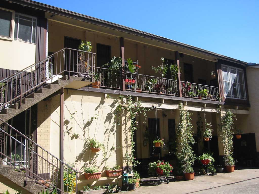 We are about 100 meters from the top of King st, but tucked away in a quiet little corner with lots of trees. 12 minute walk from Redfern station, and 3 minutes from King St busses.